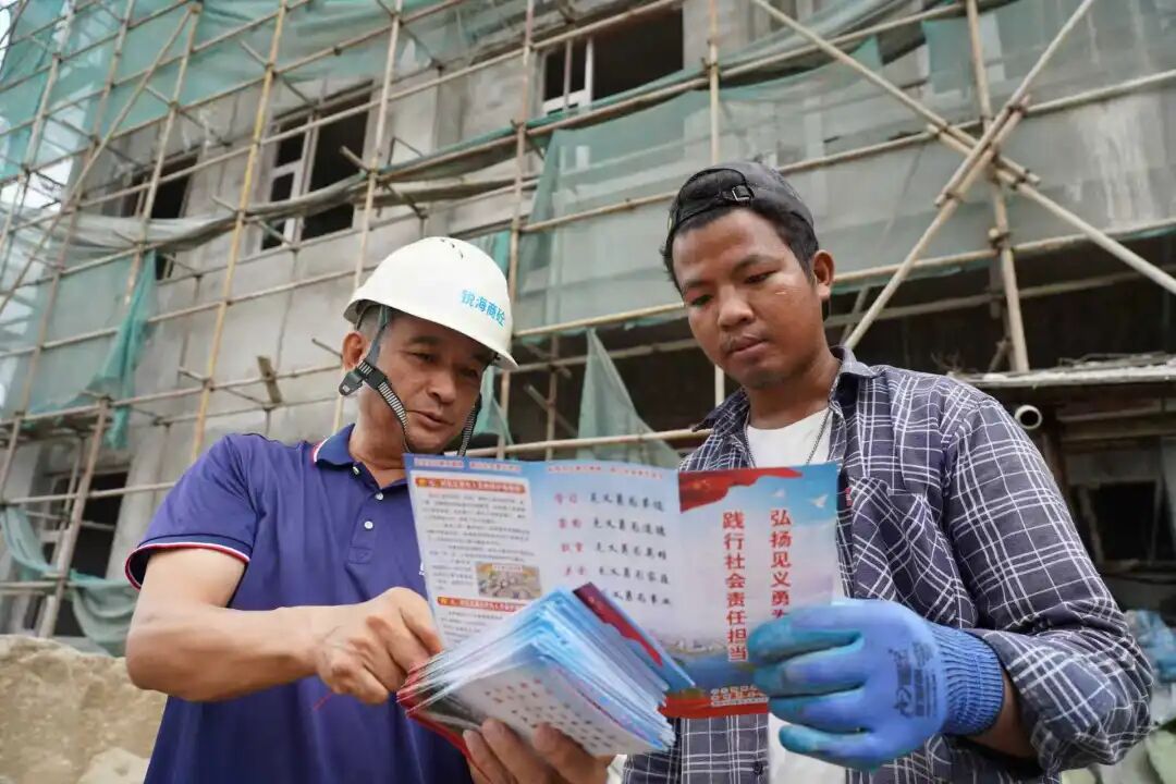 銳海公司成立“見義勇為志愿宣傳隊”,利用混凝土運輸車隊深入工地、村寨的優(yōu)勢,推動見義勇為精神“進城區(qū)、下農(nóng)村、覆蓋山區(qū)壩區(qū)”。線上建立“四群聯(lián)動”機制,線下實行“調(diào)度+車輛+工地+村寨+佛寺”一站式宣傳,堅持“五個講清”,覆蓋工地160余個、發(fā)放宣傳頁2萬余份,構(gòu)建起“人人能宣傳、人人能參與、人人能救援”的基層社會治理共同體。