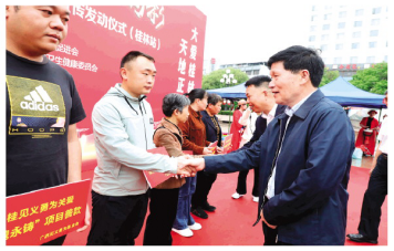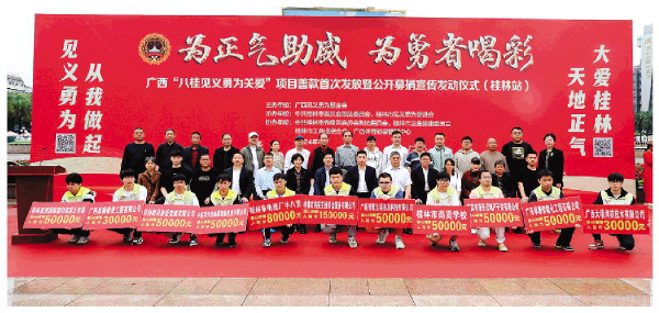 為進一步弘揚見義勇為精神,關愛見義勇為人員,傳遞社會正能量,引導社會公眾關注支持參與見義勇為事業,4月18日,“八桂見義勇為關愛”項目善款首次發放暨公開募捐宣傳發動儀式桂林站在市中心廣場舉行。該活動由廣西見義勇為基金會主辦,桂林市委政法委、桂林市見義勇為促進會承辦,活動旨在大力弘揚見義勇為崇高精神,幫扶見義勇為的困難家庭,積極倡導見義勇為時代風尚,共同凝聚起向上向善、剛健樸實的精神力量。
