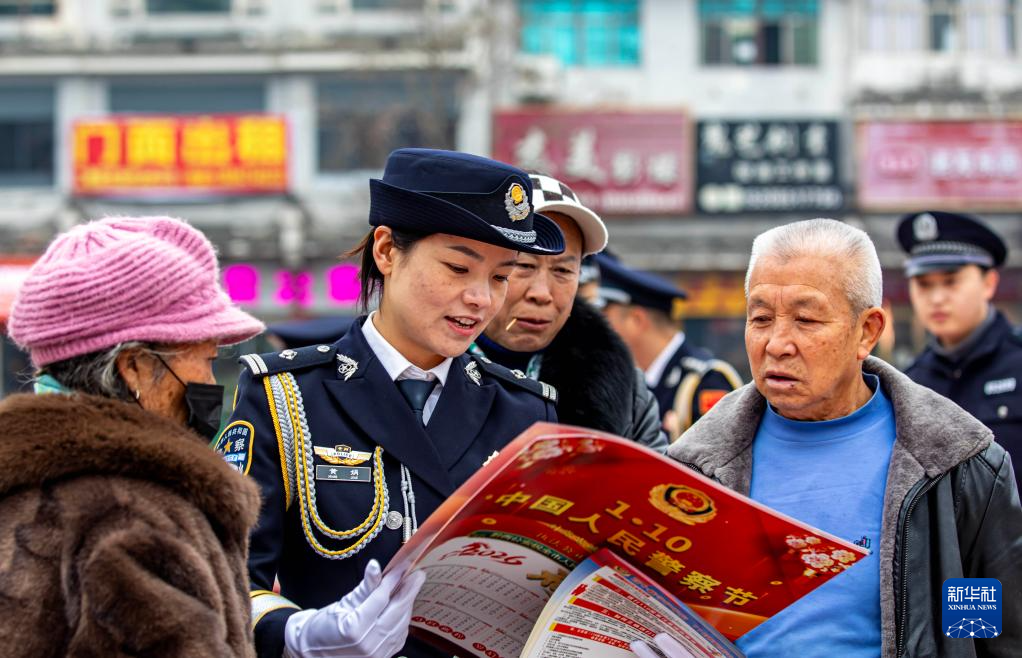 1月10日,警察在貴州省黔西市水西廣場為市民宣傳防電信詐騙知識。