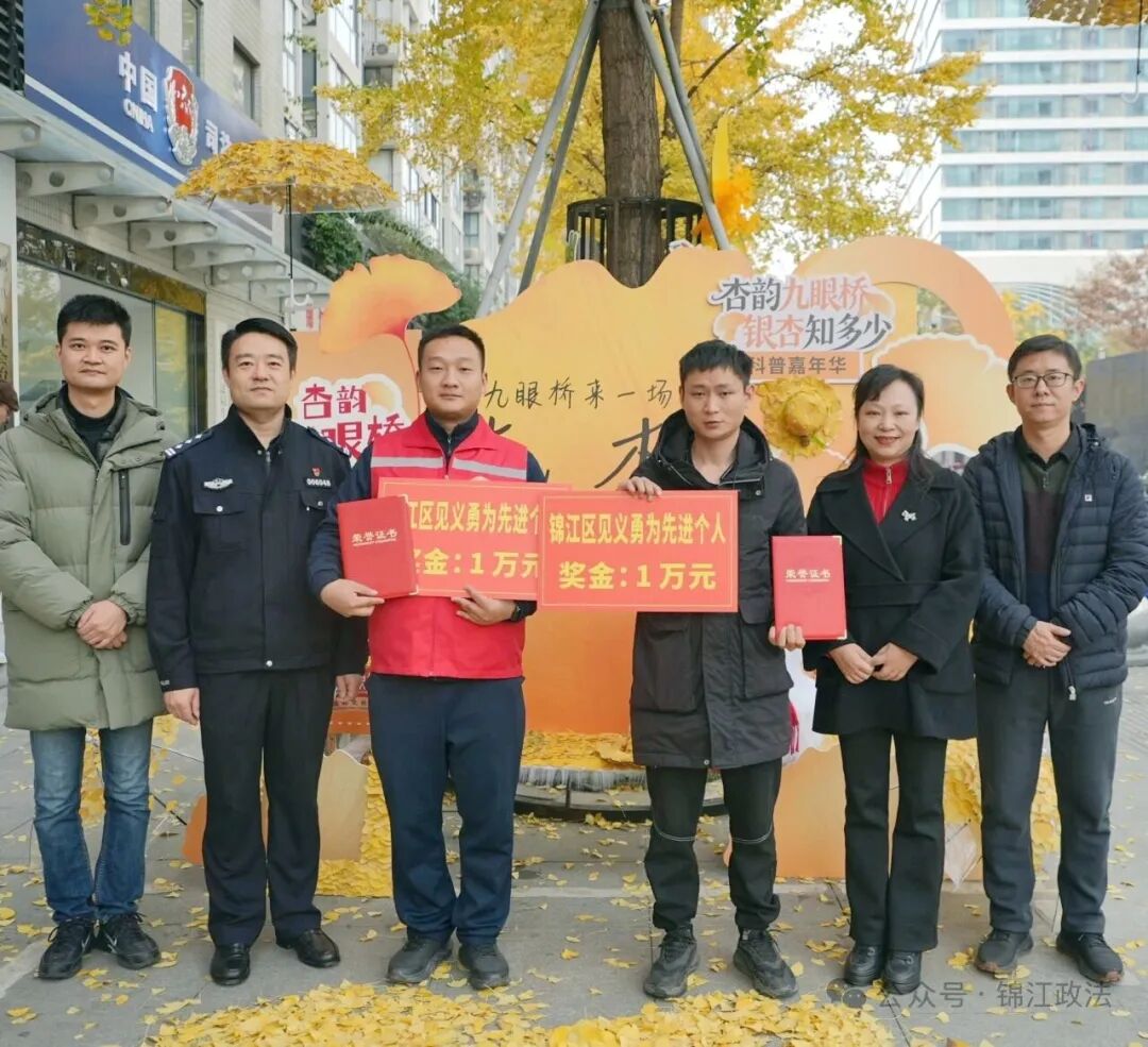 2025年12月10日,付超和張浩楠被評為“錦江區見義勇為先進個人”,分別獲得1萬元獎金。成都市錦江區委政法委供圖