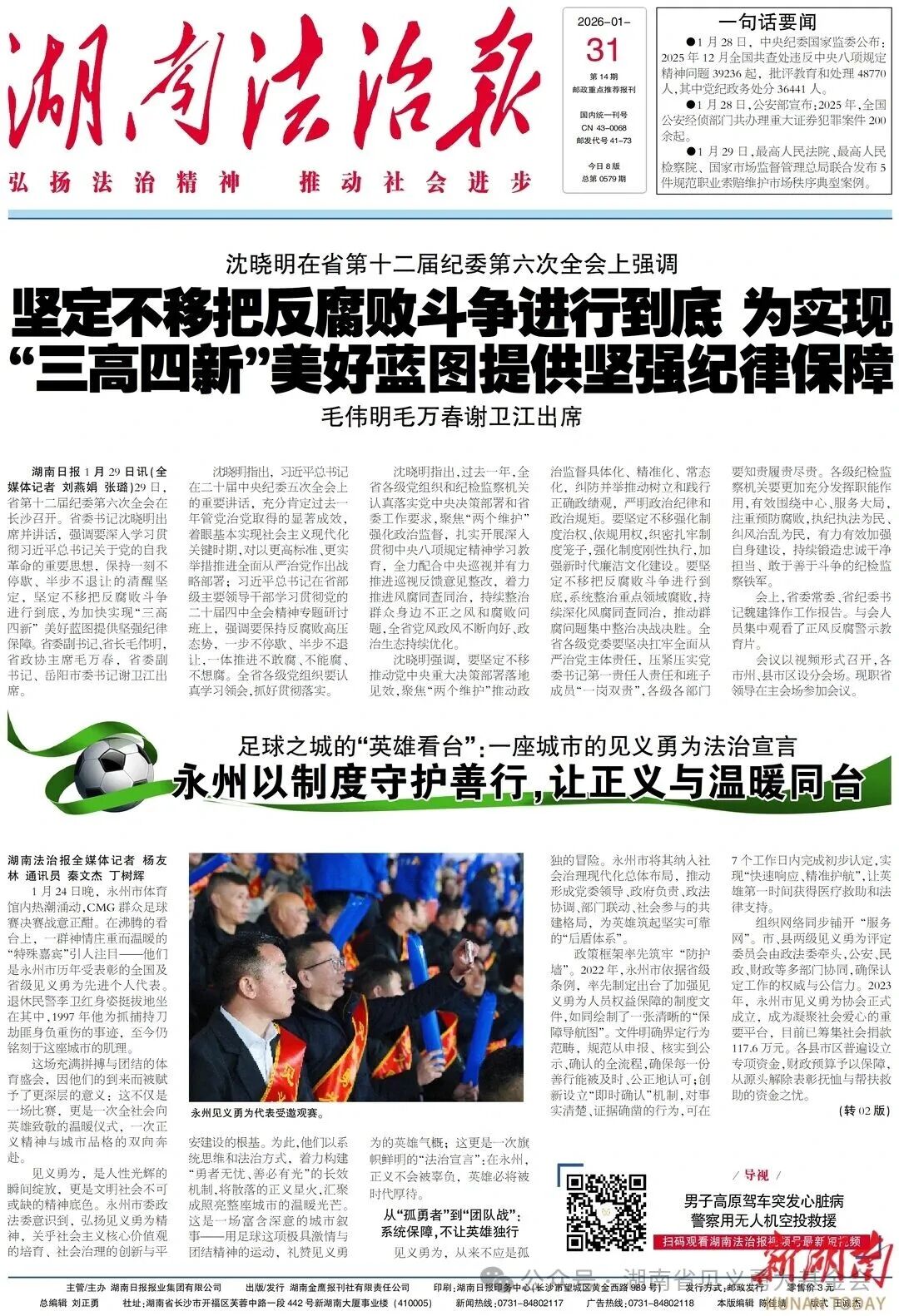 在永州,見義勇為不再是孤獨的傳奇,而是可被期待、可被保障、可被頌揚的城市集體選擇。這份由人性之光與制度之暖共同寫就的“城市宣言”,正悄然塑造著一座更有安全感、更有溫度、更顯正義的現代化城市,也讓平安與法治,成為最堅實的底色。