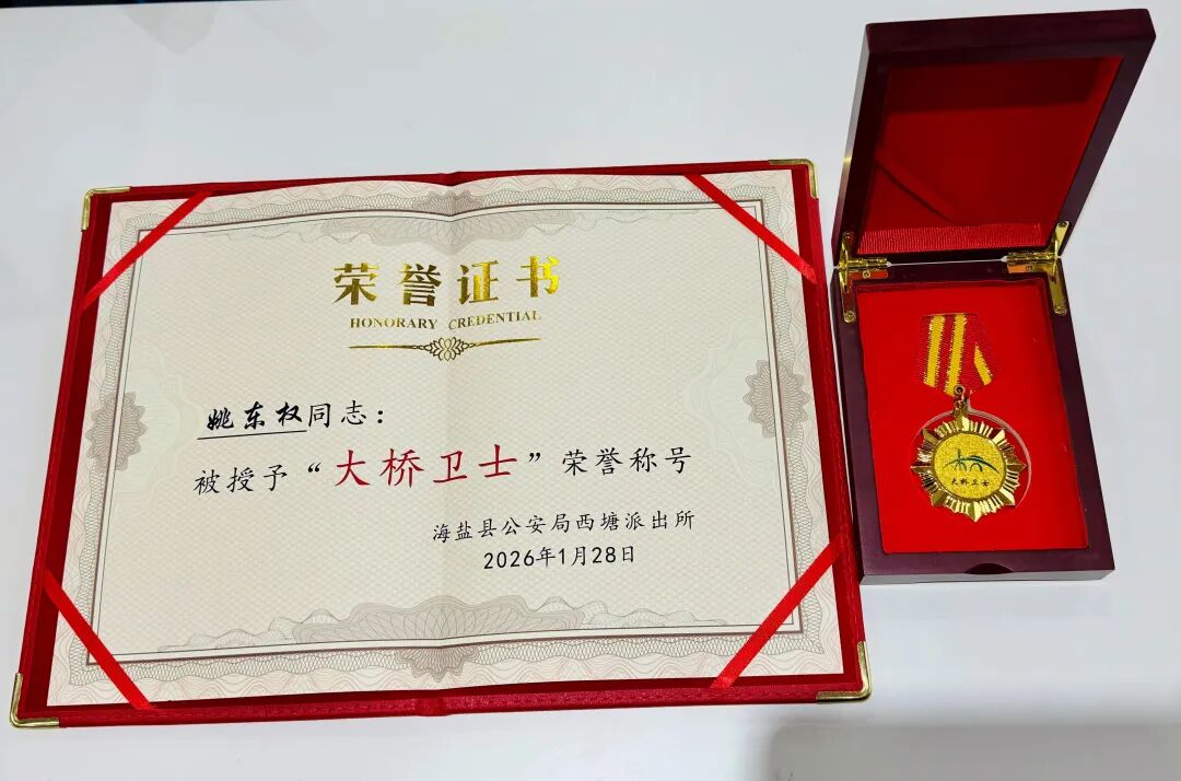 為表彰先進(jìn)、弘揚(yáng)正氣,進(jìn)一步激發(fā)全社會(huì)參與平安建設(shè)的積極性,海鹽縣西塘派出所對(duì)姚東權(quán)同志的見(jiàn)義勇為行為給予高度評(píng)價(jià),并授予其“大橋衛(wèi)士”榮譽(yù)稱(chēng)號(hào)。據(jù)悉,該稱(chēng)號(hào)的授予是西塘派出所對(duì)參與基層平安建設(shè)、踐行見(jiàn)義勇為精神先進(jìn)個(gè)人的重要認(rèn)可,更是對(duì)姚東權(quán)同志危急時(shí)刻挺身而出、守護(hù)群眾生命安全行為的充分肯定。