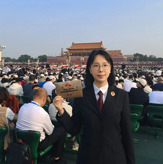 繼2019年國慶70周年閱兵觀禮后,我有幸再次現場見證這一莊嚴榮耀的時刻。當整齊的方陣昂首闊步,當先進裝備有序駛過,我看到的不僅是國家實力的躍升,更是14億中國人牢記歷史、守護和平的鋼鐵意志與堅定決心。作為革命后代,先輩們為家國浴血奮斗的不屈精神激勵我砥礪前行,而作為法官代表,這份觀禮的榮耀,已化作沉甸甸的責任。我將繼續以黨員先鋒標準嚴格要求自己,在每一份司法裁判中彰顯公平正義,在每一次矛盾化解中傳遞黨的溫暖,“為民解愁盼,為黨守民心”,為國家的法治建設與長治久安貢獻全部力量。