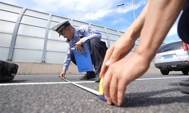 張雷從這一點入手,借鑒測繪攝影技術,將傳統直線型標尺改良為平行四邊形的標尺,在現場勘查過程中,只需把標尺擺在痕跡附近,用相機進行拍攝,將照片上傳到其研發的“道路交通事故快速處置系統”內,系統可自動生成所需的勘驗要素,從而有效縮減現場勘查的時間。