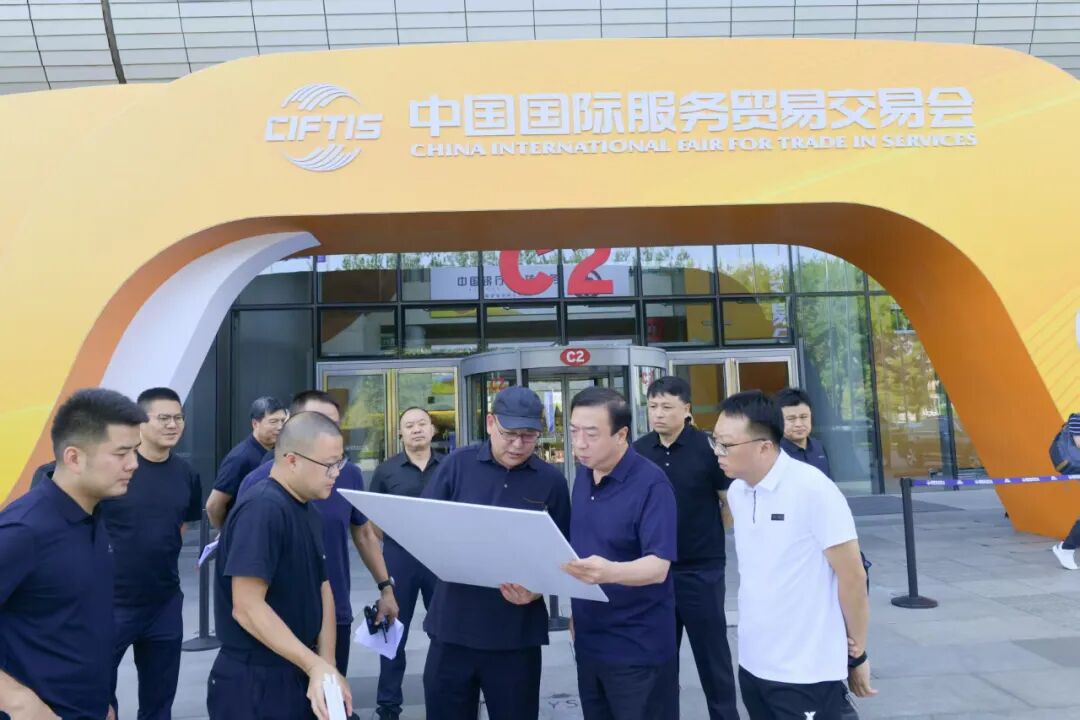▲董亦軍(右四)在2023年中國國際服務貿易交易會,對交通服務保障工作進行現場踏勘。