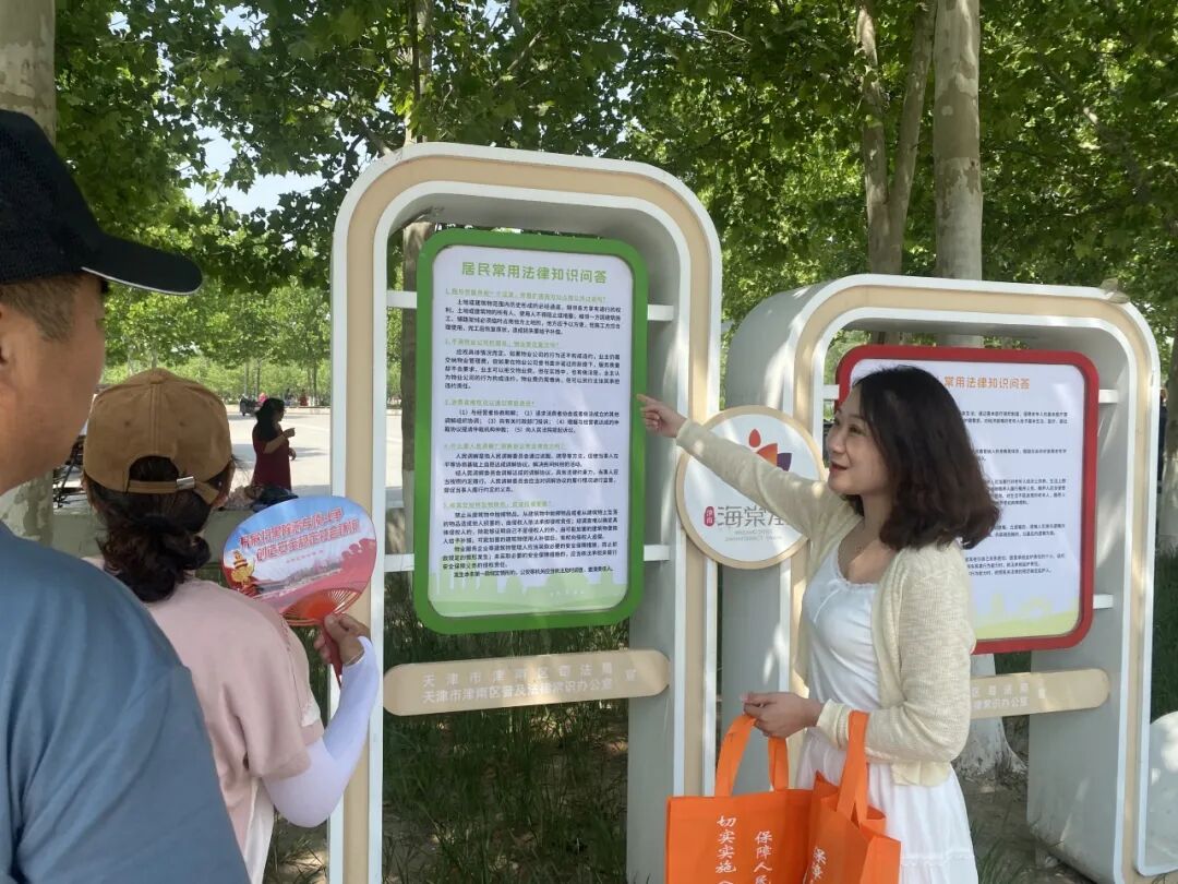 在此基礎上,津南區司法局指導推動鎮街結合自身實際,通過建設法治公園、廣場等,拓展法治宣傳教育陣地的覆蓋面。