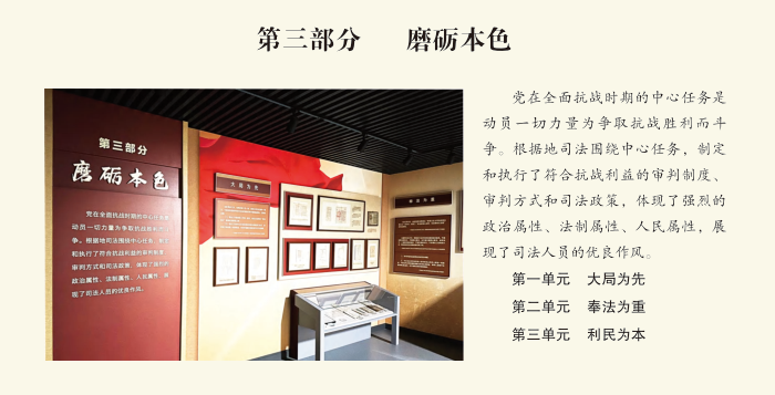 “山西抗日根據地司法檔案文獻選展”由山西高院主辦、晉中中院承辦,選展內容主要以抗日戰爭時期晉冀魯豫抗日根據地的司法檔案,以及晉察冀和晉綏抗日根據地司法文獻及輔助展品為主。通過原件陳列、場景再現等形式,多角度全方位地呈現在中國共產黨的領導下山西抗日根據地司法工作的概貌。