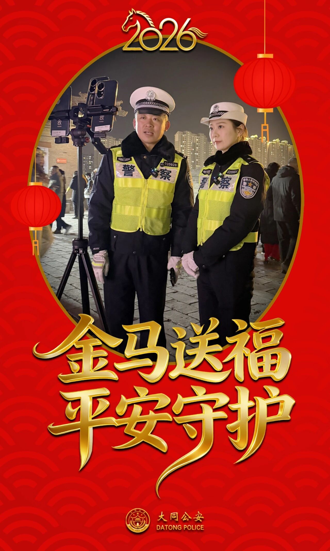 這個(gè)春節(jié),山西大同公安民警輔警全員在崗、日夜堅(jiān)守,以“警察藍(lán)”為底色,繪就節(jié)日平安畫卷;用“中國(guó)紅”為愿景,守護(hù)萬(wàn)家團(tuán)圓燈火。