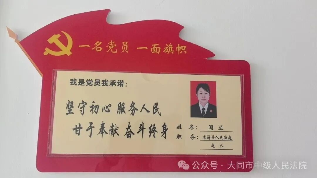 鐫刻著“我是黨員我承諾:堅守初心,服務人民,甘于奉獻,奮斗終身”字樣的牌子就掛在她辦公室門口。