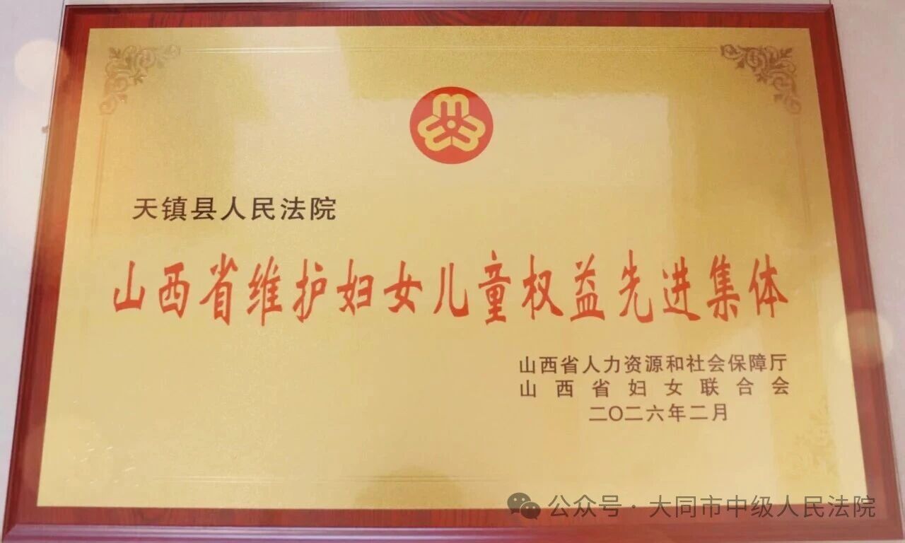 天鎮法院獲評“山西省維護婦女兒童權益先進集體”