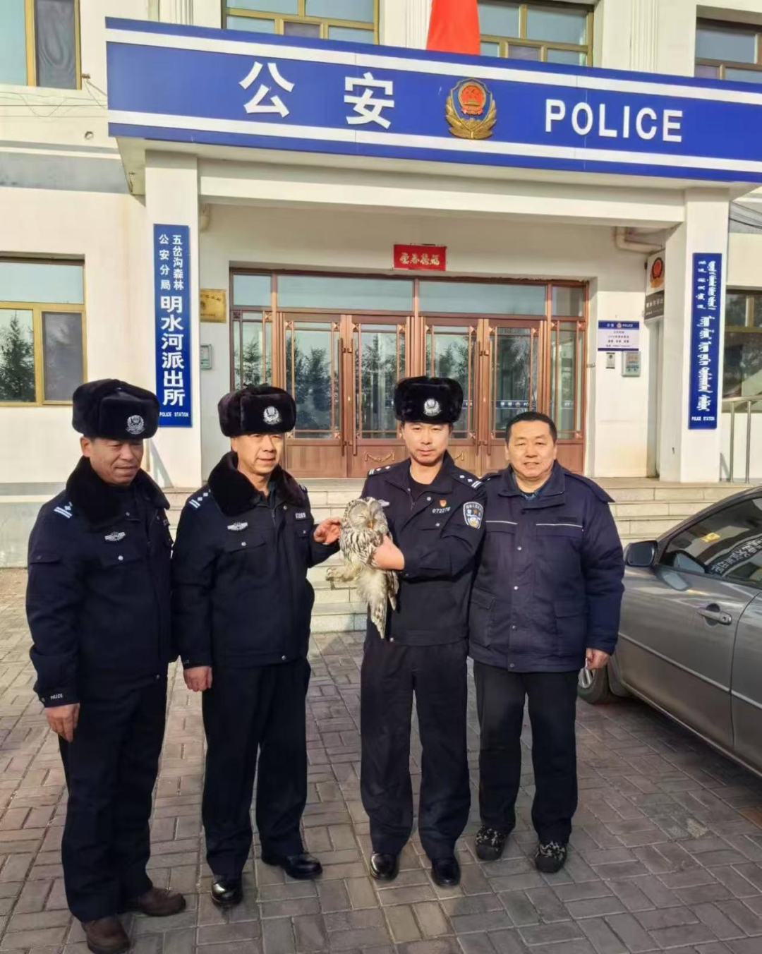 最讓民警欣慰的是群眾態度的轉變。前不久,七十歲的老護林員老周來電話說:“孫警官,我家后院有只折翅的貓頭鷹,快來救救它!”孫占輝趕到后發現,這是國家二級保護動物雕鸮。老周一邊為民警倒茶,一邊絮絮叨叨地說起自己的過往:“我年輕時也打過獵,那時候不懂,只想著謀生,現在才明白,這些生靈是林子的魂,是我們的鄰居,得好好守著。”雕鸮經過精心救治康復后,老周執意要親自看著它放飛。看著雕鸮展開翅膀,振翅飛向茫茫林海,老周仰著頭,眼里滿是欣慰。