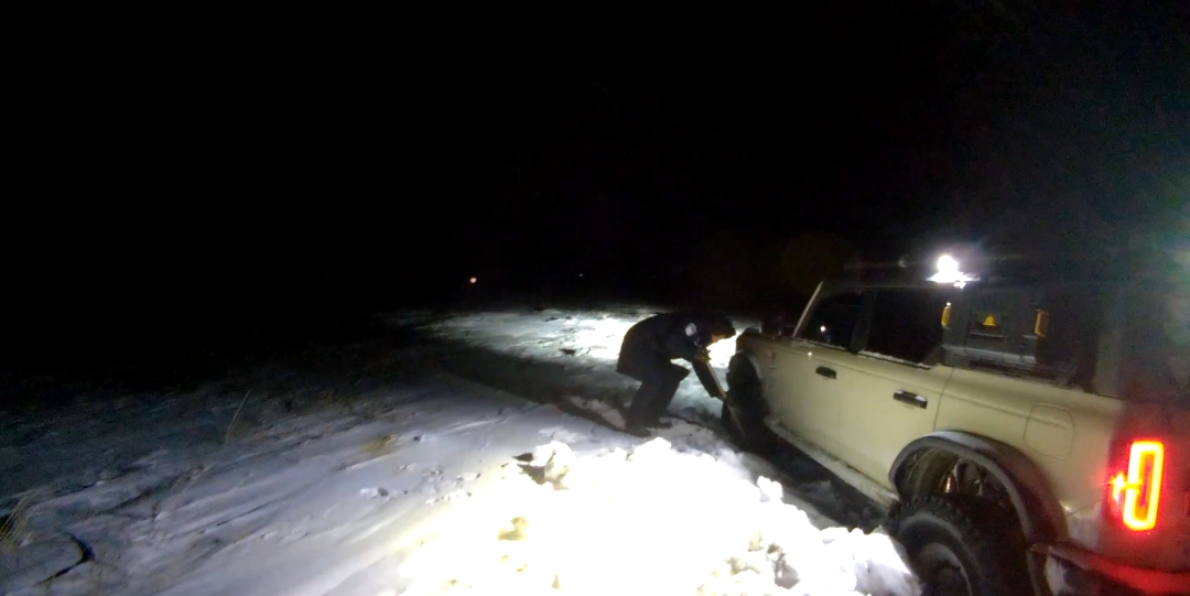 接到報(bào)警后,嘎海樂邊境派出所教導(dǎo)員熊耀鵬立即組織警力,攜帶鐵鍬、牽引繩、汽油等救援裝備趕赴現(xiàn)場(chǎng)。然而,警車駛至距事發(fā)地約2公里處,也被深雪困住。