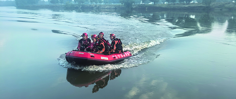 在遼河流域使用沖鋒舟對重點區域進行日常巡邏