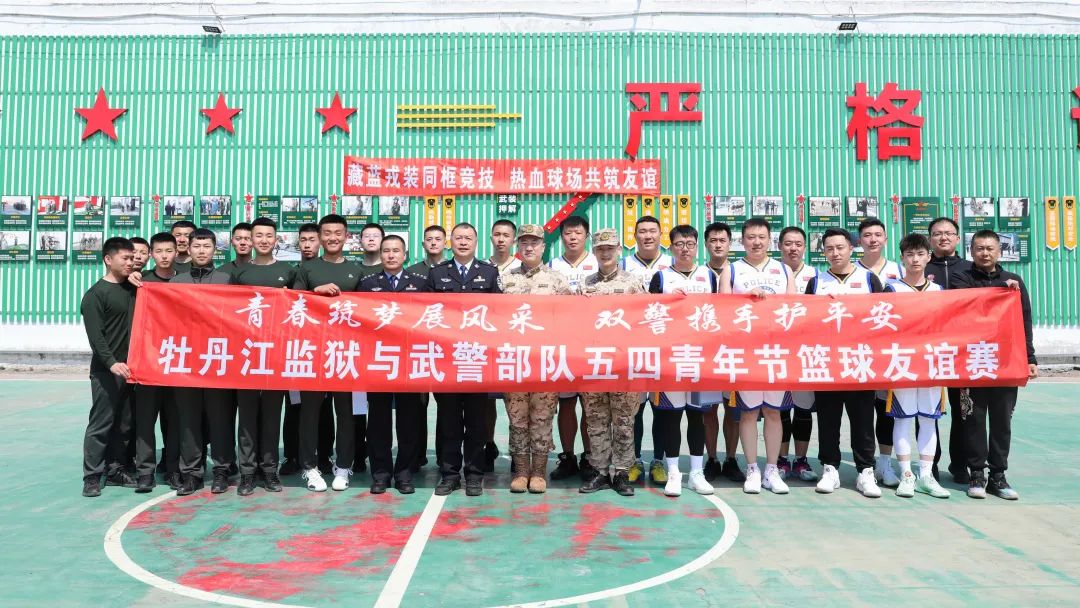 牡丹江監獄與武警部隊籃球友誼賽在籃球場火熱開賽。藏青藍與橄欖綠的身影在球場上交織,用默契配合書寫協作篇章,以熱血對抗詮釋對手亦戰友的深情。