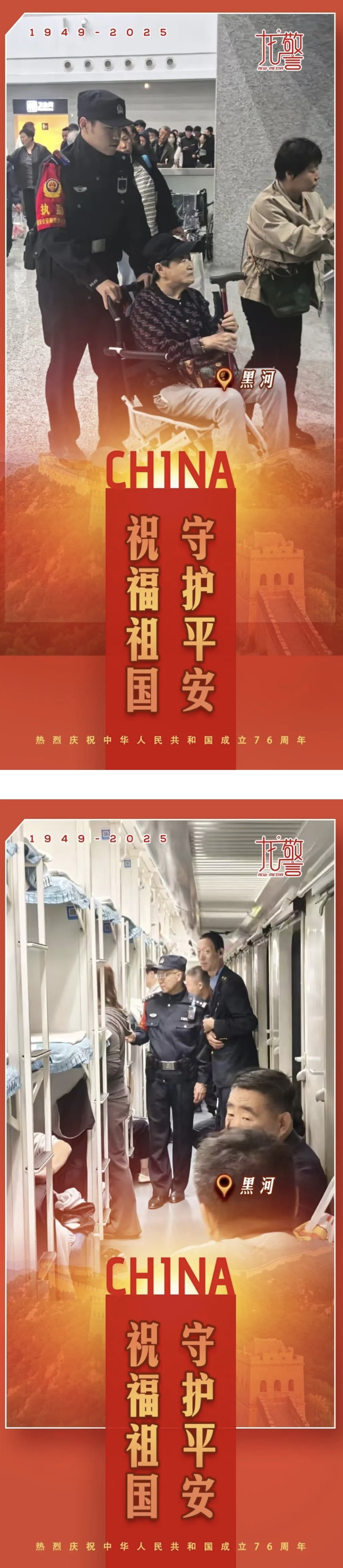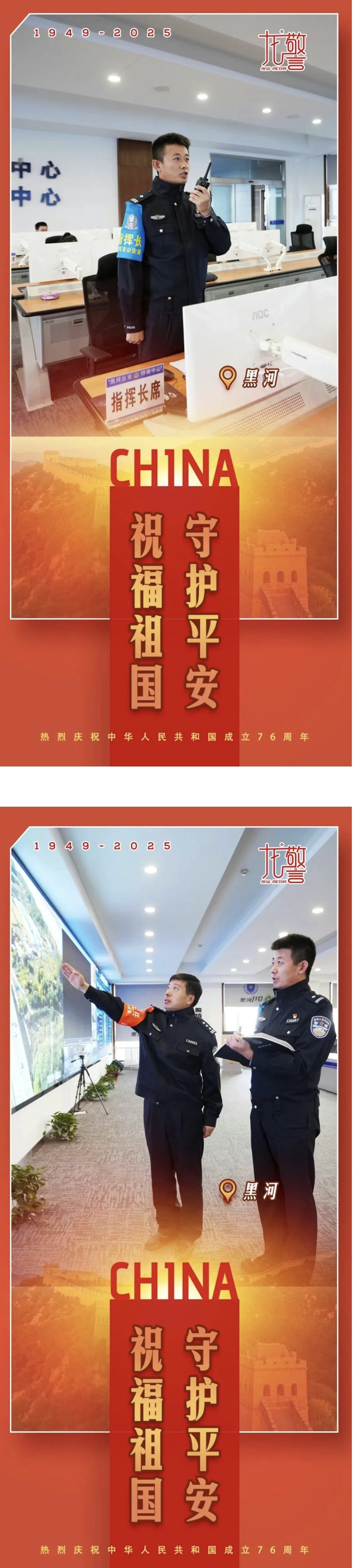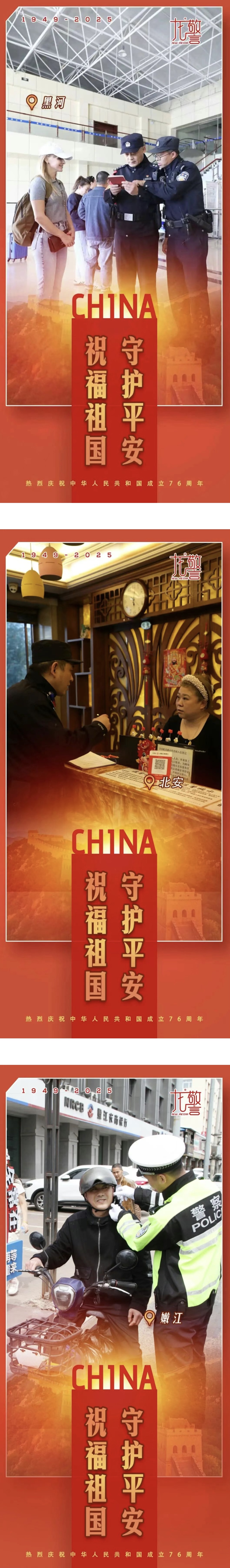 金秋十月,舉國同慶,黑龍江省黑河市公安局民警輔警以“警察藍”獻禮“中國紅”,他們用責任詮釋初心,以擔當書寫忠誠,在這個特殊的日子里,以最樸實的方式,向祖國獻上最深情的告白。