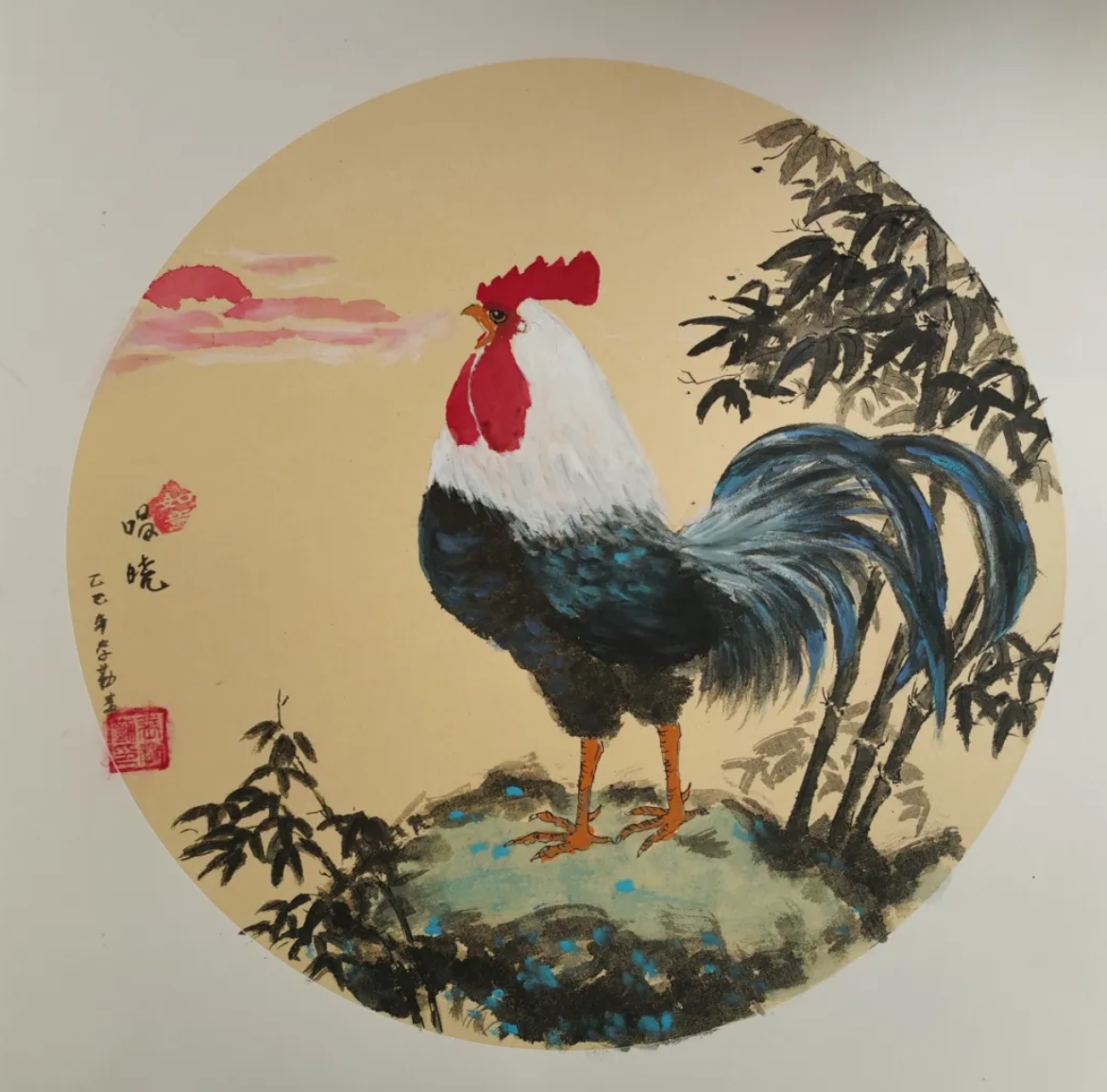 竹子象征清正廉潔,而雄雞是“五德”的化身,激勵人向往光明、積極進取。共同祝愿我們的祖國繁榮昌盛、前路輝煌。