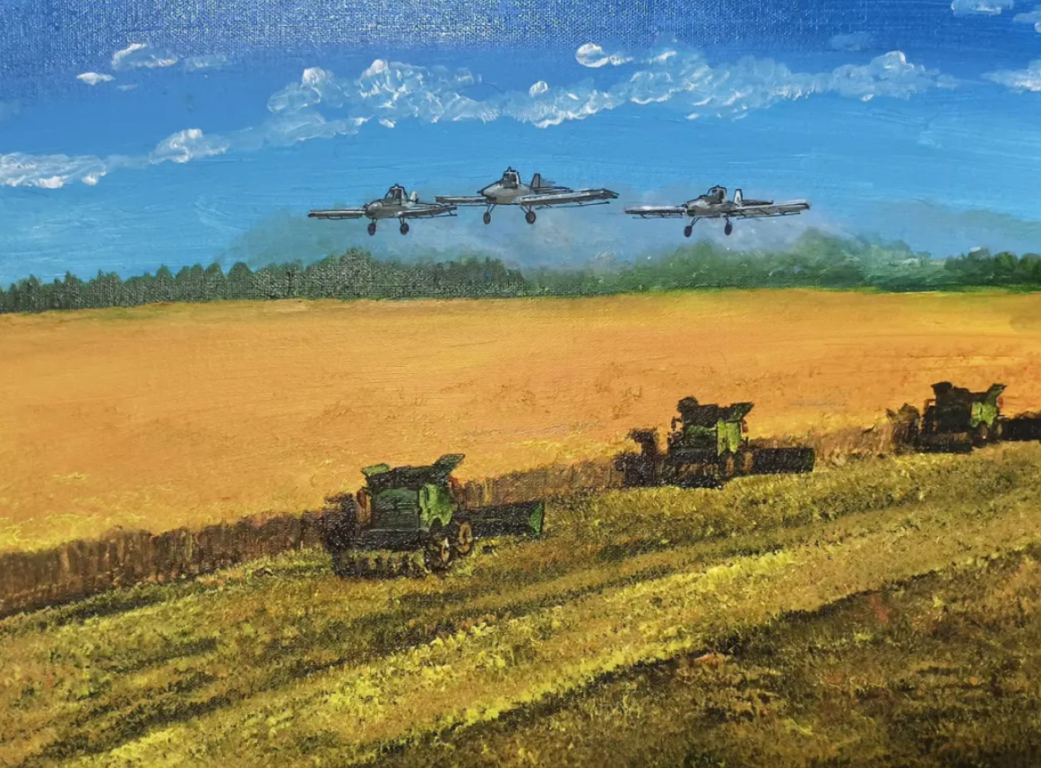 燃燒的荒火元素既隱喻黑土地“捏把土冒油花”的豐饒本質,又昭示三代農墾人從人拉犁到衛星導航的農業革命,將北大荒精神淬煉為保障國家糧食安全的金色豐碑。