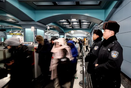 公交分局在博物館站、中央大街站、冰雪大世界站等重點車站,采取前置警力、增派安保力量等措施,強化現場秩序維護。科學運用硬隔離管控模式,在換乘通道、閘機群、出入口等關鍵節點,構建“之”字形或單向循環通行路徑,有效分散客流壓力。同時,針對游客攜帶行李多、不熟悉流程等特點,優化安檢程序,設置咨詢服務崗,在確保安全的前提下提升通行效率,全力保障地鐵運營安全順暢。