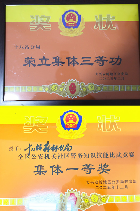 這一年,驛站公安被地局授予集體三等功;1個(gè)集體榮獲集體嘉獎(jiǎng);分局榮獲全區(qū)公安機(jī)關(guān)社區(qū)警務(wù)比武競賽集體一等獎(jiǎng);1個(gè)集體榮獲崗位練兵實(shí)戰(zhàn)比武競賽優(yōu)秀獎(jiǎng);4名民警榮立個(gè)人三等功;15名民警榮獲個(gè)人嘉獎(jiǎng);2名民警榮獲全區(qū)公安機(jī)關(guān)社區(qū)警務(wù)比武競賽個(gè)人一等獎(jiǎng)和二等獎(jiǎng);1名輔警榮獲全區(qū)公安系統(tǒng)優(yōu)秀通訊員;情指中心在全區(qū)公安科技信息化業(yè)務(wù)比武中榮獲第三名。