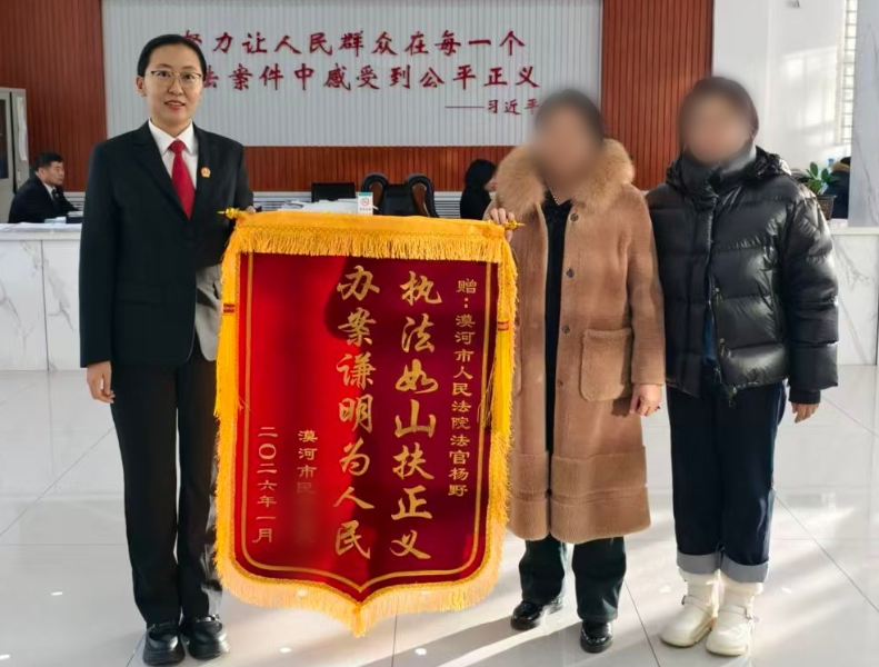 2026年1月11日,祖國最北端的漠河仍裹在凜冽寒風中,黑龍江省大興安嶺地區漠河市人民法院的楊法官、孫法官卻已收拾好案卷,踏上了前往東南沿海福建惠安的路途。這趟跨越4000多公里的司法征程,只為化解一起塵封十年的親情借貸糾紛,在春節來臨前,為急需看病養老的原告于某追回“救命錢”,也為瀕臨破裂的親情搭起和解的橋梁。近日,一面印著“執法如山扶正義辦案謙明為人民”的鮮紅錦旗,被于某在女兒的陪同下送到兩位法官手中,這抹新春里的中國紅,成了司法為民最溫暖的注腳。