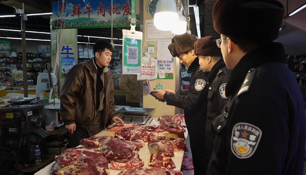 “老板,麻煩出示一下冷鏈食品的檢疫證明和進貨臺賬,溯源碼也要,我們核對一下?!鼻宄康霓r貿市場寒意未消,黑龍江省牡丹江市東寧市公安局環食藥偵大隊民警陳濤和同事們已經穿梭在熙攘的攤位間。