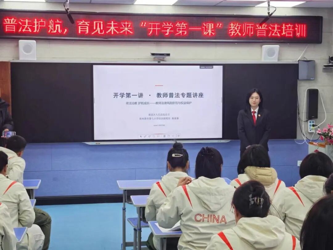 定向講法第三站:進入第七小學,民事審判庭法官曲家新圍繞校園安全治理與掃黑除惡,針對教師教學實際,以通俗語言和鮮活案例講解教學一線的法律問題。內(nèi)容涵蓋校園活動責任邊界、安全糾紛化解、師生權(quán)益保障及風險防范等方面,讓法律條文貼近工作場景。宣講旨在助力教師依法履職、防范執(zhí)教風險,引導其主動承擔掃黑除惡和抵制校園欺凌的職責。