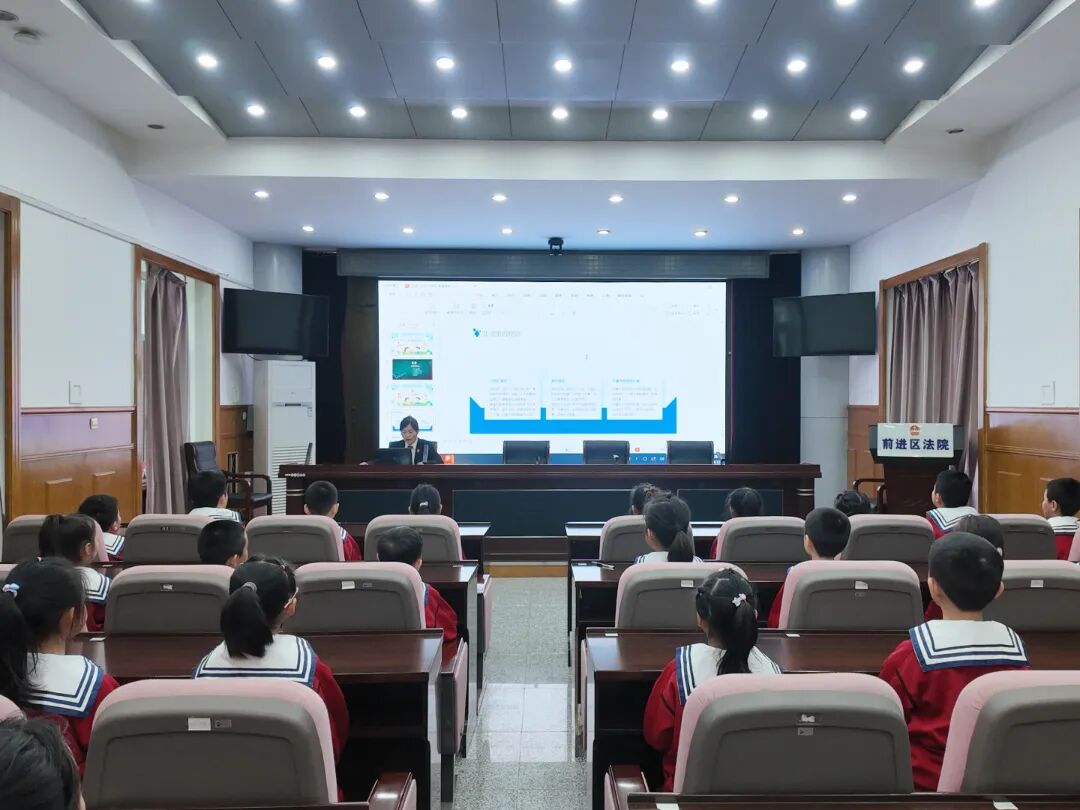 引導學法第五站:發(fā)揮陣地作用,綜合審判庭法官王鵬邀請第六小學二校區(qū)孩子進法院,開啟探索之旅:體驗安檢流程,了解訴訟服務與數(shù)字法院建設,走進審判庭觸摸法槌、扮演“小法官”,感受司法威嚴。在會議室,王鵬以“做懂規(guī)則的超級小英雄”為主題,講解民事法律年齡對應的權(quán)利與責任,強調(diào)“長大意味著責任開始”,引導孩子樹立規(guī)則意識,遠離欺凌、認清黑惡勢力,學會自護并爭做宣傳員。
