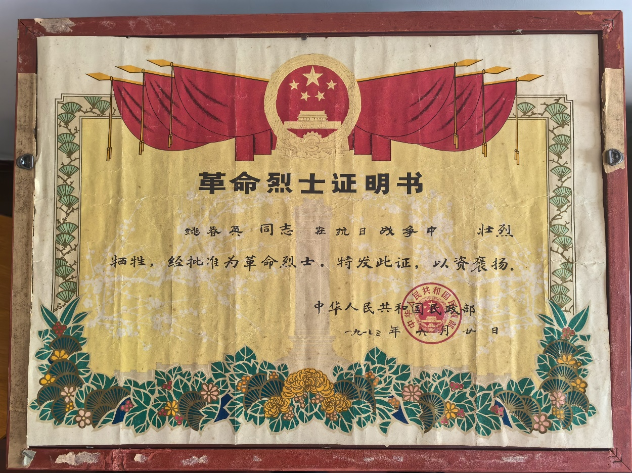 民政部頒發(fā)革命烈士證明