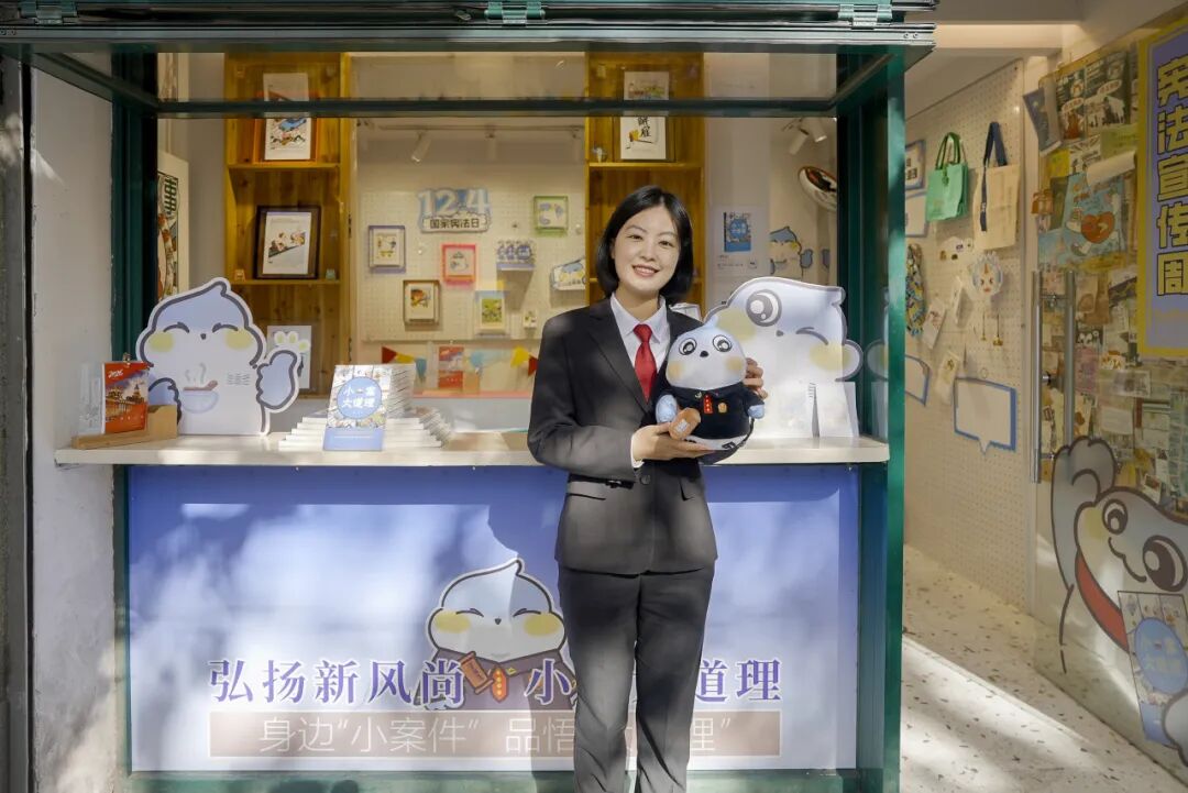 “這里既是開放式普法空間,也是互動性極強的法治文化體驗站,我們希望讓法治精神走出書本,融入街區,來到大家身邊。”愚園路1046號故事商店內,徐莉向線上網友和線下路人發出邀請,歡迎大家走進快閃店,解鎖不一樣的學法新方式。