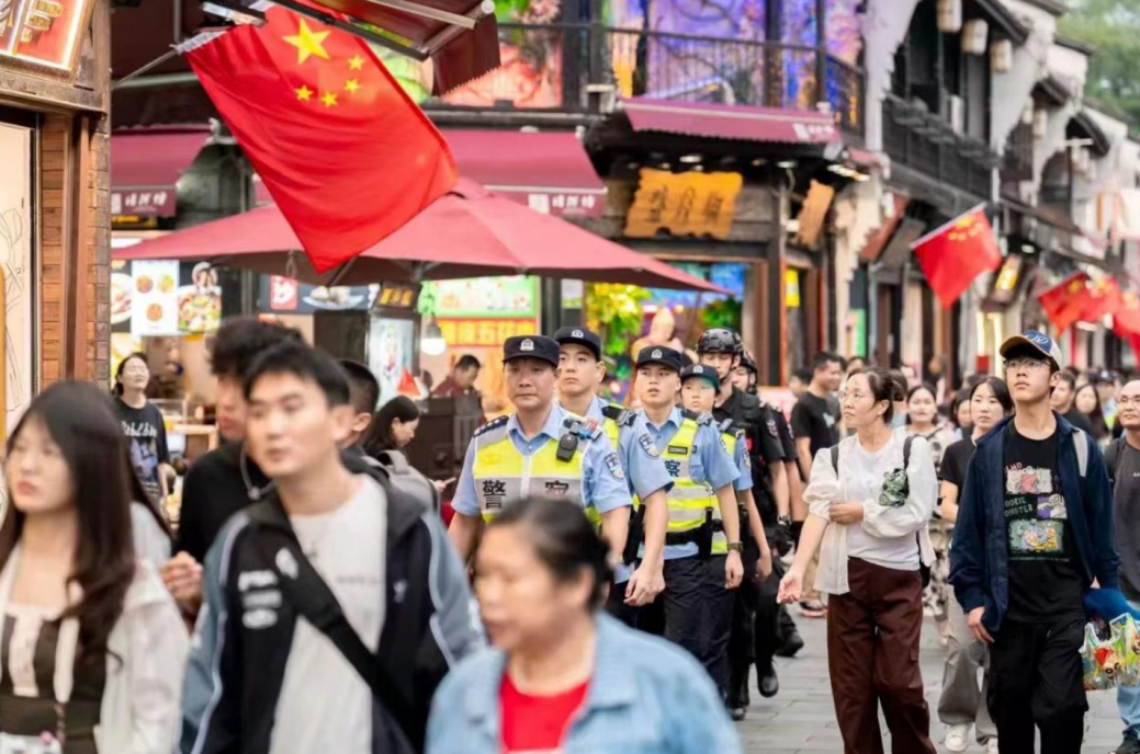 指揮疏導、文明勸導、服務指路,杭州公安為游客提供了安全、順暢的游覽體驗。