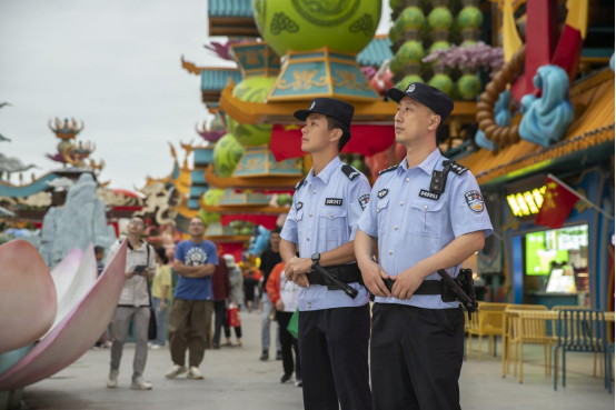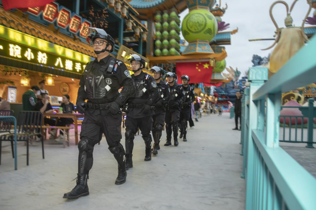 平湖公安在景區開展巡邏,扎實做好安全防范和服務保障工作。