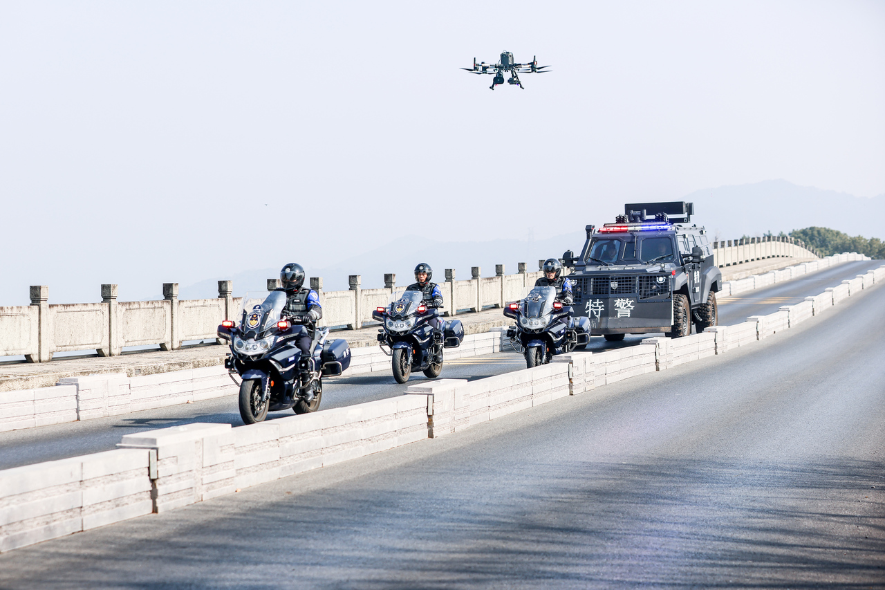 無人機與特警隊員共同巡邏 蕭山公安供圖