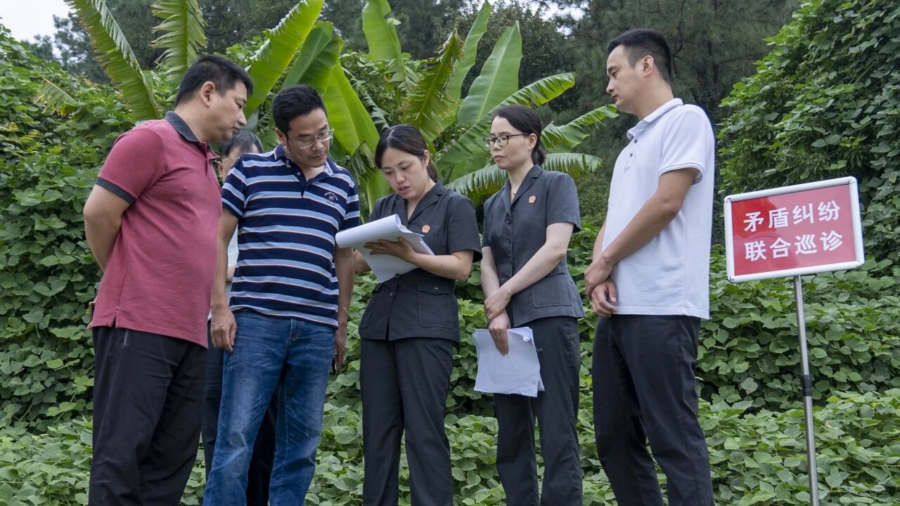 早在2019年,泗安法庭推動成立首個“鄉鎮黨委牽頭,法庭、派出所、司法所和市場監督、婦聯等職能站所參與”的矛盾糾紛聯合巡診團,定期赴各村居、企業“巡診”,形成糾紛摸排化解部門協同格局。各村居對矛盾糾紛進行摸排后,可以根據實際情況邀請矛盾糾紛聯合巡診團到村里進行現場“診斷”,并聯合“會診”開出精準“藥方”。