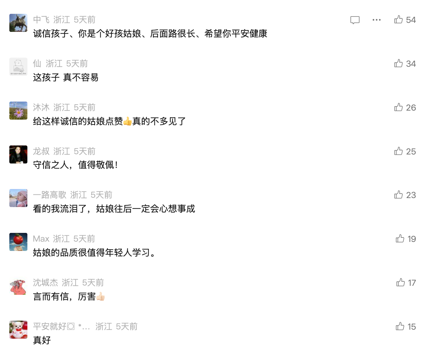 近日,浙江紹興姑娘用10年還款100多萬的故事,打動了眾多網(wǎng)友,有網(wǎng)友留言:“姑娘往后一定會心想事成!”