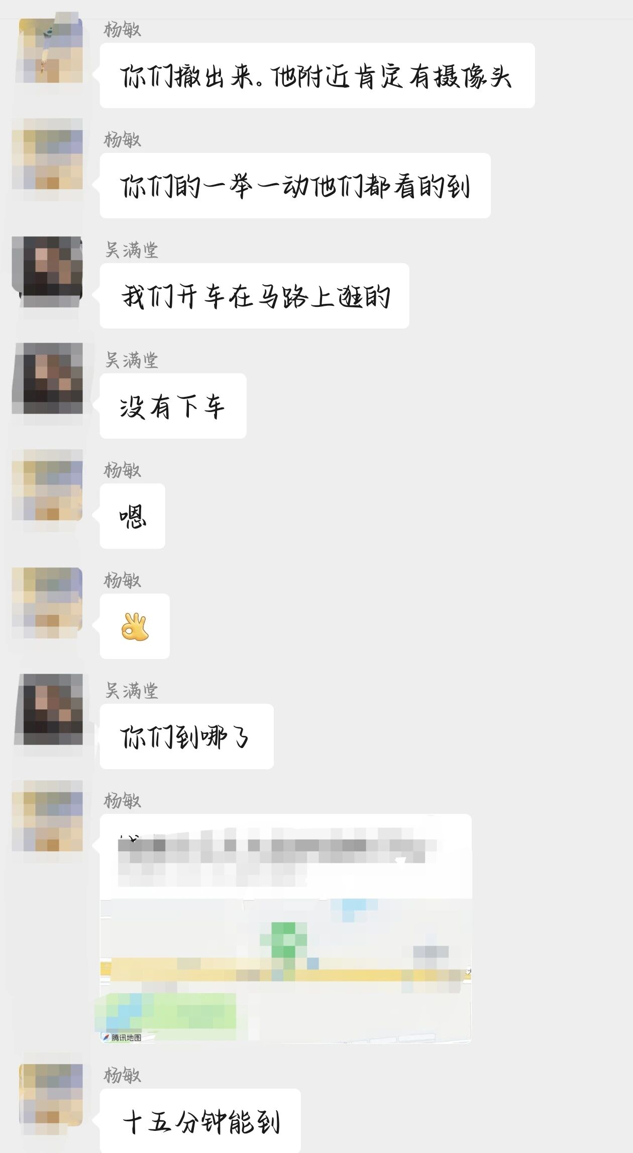 楊敏照做后,就往回走,離開了現場。走了幾步路,她發消息給埋伏在不遠處的同事說:“你們不要靠太近,保持一定距離。”
