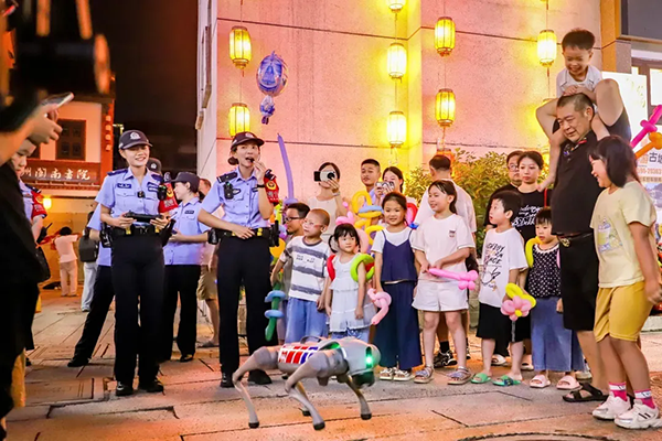 在這片熱鬧與歡騰之中,人群中傳來急切的呼喊聲。正在巡邏的“漳州110”九中隊民警循聲查看、確認情況,立即出動警用無人機高空喊話,有序疏散游客;警用機器狗穿過人群,精準找到傷者位置。民警為傷者初步檢查,緊急救助,不一會兒,傷者逐漸恢復意識。救護車趕到現場,將其送到醫院進一步治療。