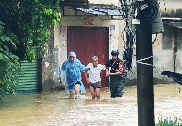 “水太大了,家里的老人出不來。”當天17時許,“漳州110”接到群眾求助,稱薌城區南坑街道古塘村道路積水嚴重,有一名老人被困在家中。民警立即攜帶救援設備火速趕到現場,只見老人正蜷縮在家中高處,積水已淹至腰部。民警迅速上前,將老人背起,小心翼翼地將其轉移至安全區域。