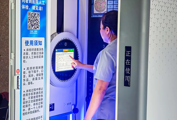 市民在24小時自助便民車管所使用自助體檢機體檢