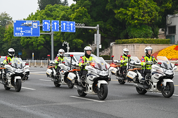 福州交警鐵騎在五一廣場附近巡邏