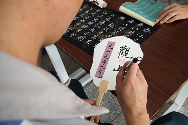 服刑人員在進行書法作品創作