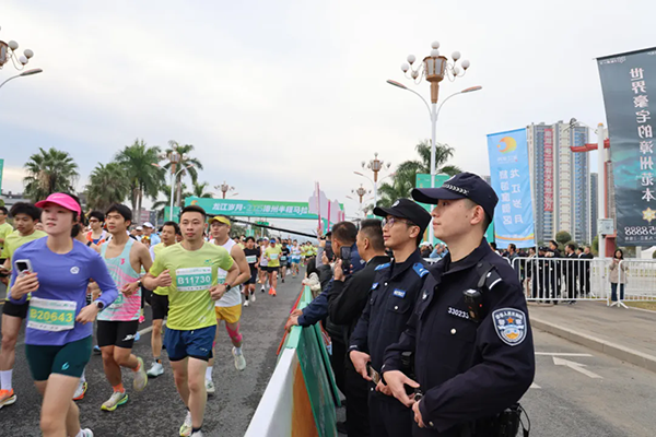 “有你們?cè)冢覀兣艿锰貏e安心。”2025年11月30日,“龍江歲月·2025”漳州半程馬拉松賽道上,一名選手對(duì)公安民警的貼心服務(wù)贊嘆道。作為漳州市區(qū)首次舉辦的高規(guī)格半程馬拉松,一抹抹“警察藍(lán)”成為一道令人心安的城市風(fēng)景線。