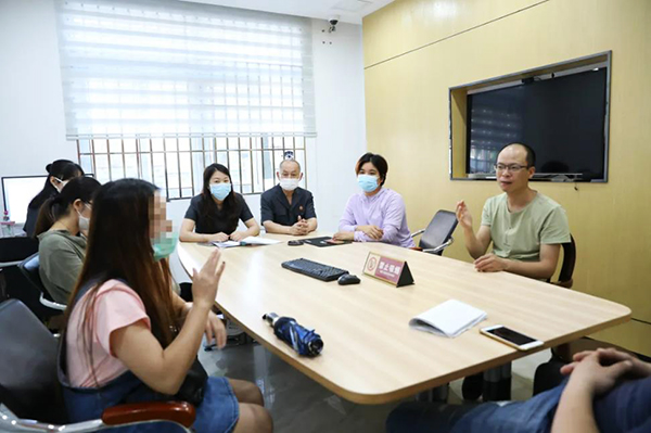 在“泉心護”家庭教育指導暨心理觀護中心,法官協同家庭教育指導師做當事人思想工作