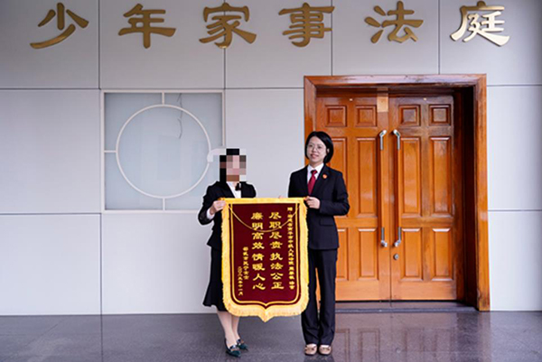 一起離婚涉撫養權糾紛案件的當事人向南平中院少年庭法官送來錦旗