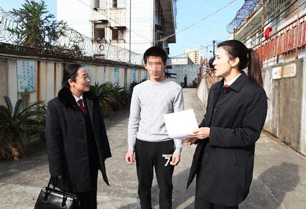 “時代先鋒”“全國模范法官”詹紅荔(左)到看守所迎接新生少年回歸社會