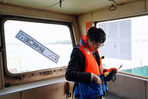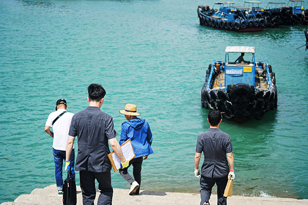 廈門海事法院執行干警正準備搭乘擺渡船前往案涉船舶錨地