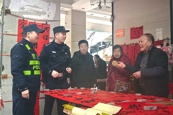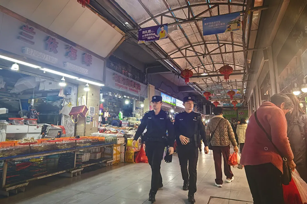 “春節(jié)前年貨采購高峰期,求助警情和商戶間的占位摩擦明顯增多。”城關(guān)派出所所長劉賽亮介紹,為全力保障群眾安心辦年貨,派出所聯(lián)合巡特警反恐大隊組建專項巡防隊伍,分兩組投入執(zhí)勤力量,在人流高峰時段開展不間斷巡邏防控和安全提醒,確保各類突發(fā)警情快速處置。