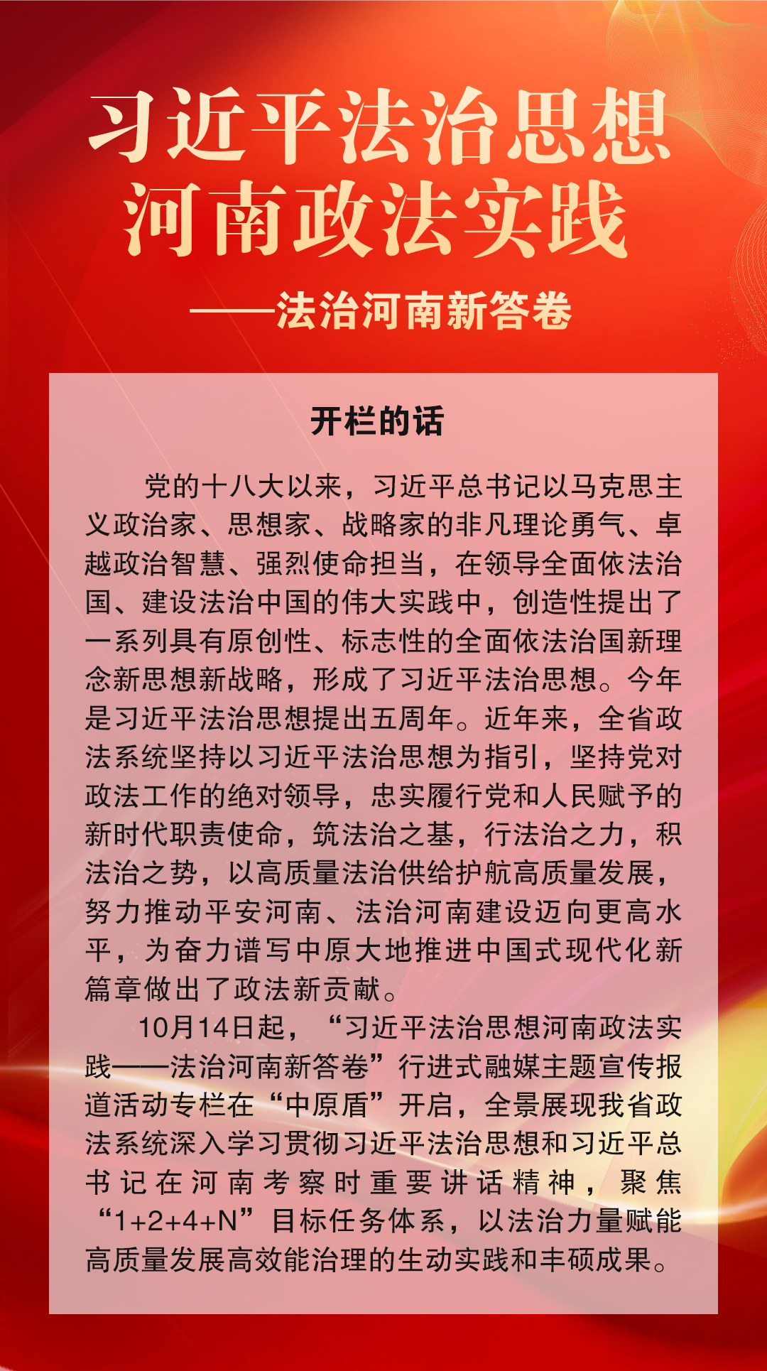 (統(tǒng)籌策劃:省委政法委宣傳處 文:河南法治報(bào)采訪組 侯欽曉 趙新菊 張軍強(qiáng) 胡斌 李世杰)