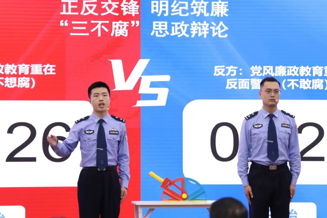 “真理越辯越明。”隨后,法制支隊將青年辯論賽搬上講臺,正反雙方以“黨風廉政教育是以正面教育為主還是以反面警示為主”為題,展開一番唇槍舌劍,揭示出“正面示范鑄魂,反面警示立威,正面示范與反面警示如同車之雙輪,二者缺一不可”的核心要義。