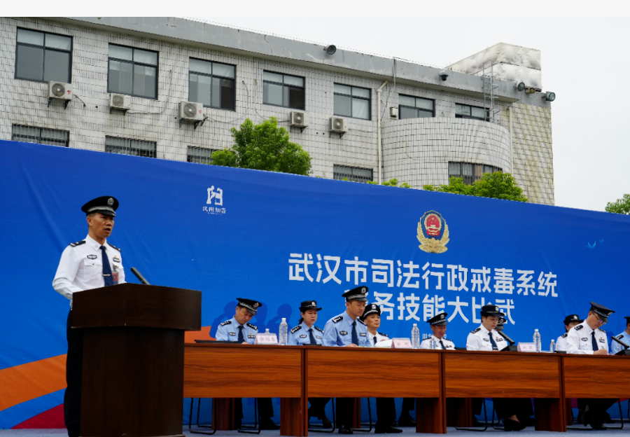 省戒毒局政治部專職副主任張明,武漢市司法局黨委委員、政治(警務)部主任左大文出席活動;市司法局戒毒教育矯治所所長劉輝主持活動。省戒毒局、市司法局組宣處及武漢市司法行政戒毒系統“一處七所”相關領導出席活動。省沙洋強戒所、襄陽市強戒所相關領導和工作人員觀摩了大比武全過程。