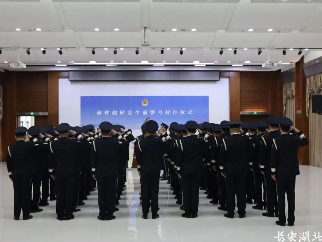 12月12日下午,武漢市公安局江夏區分局會議室,分局交管大隊因公犧牲民警蔣仲超生前警號封存儀式舉行。